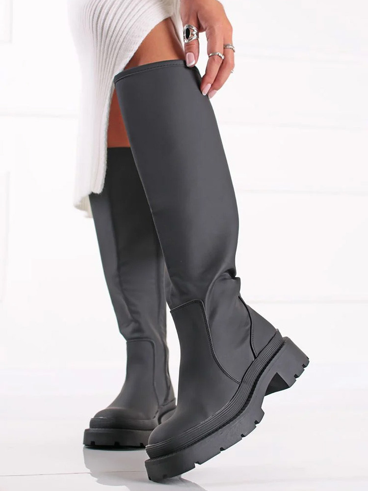 Μαύρες ψηλές μπότες με τρακτερωτό πάτο και φερμουάρ κανονική γραμμή