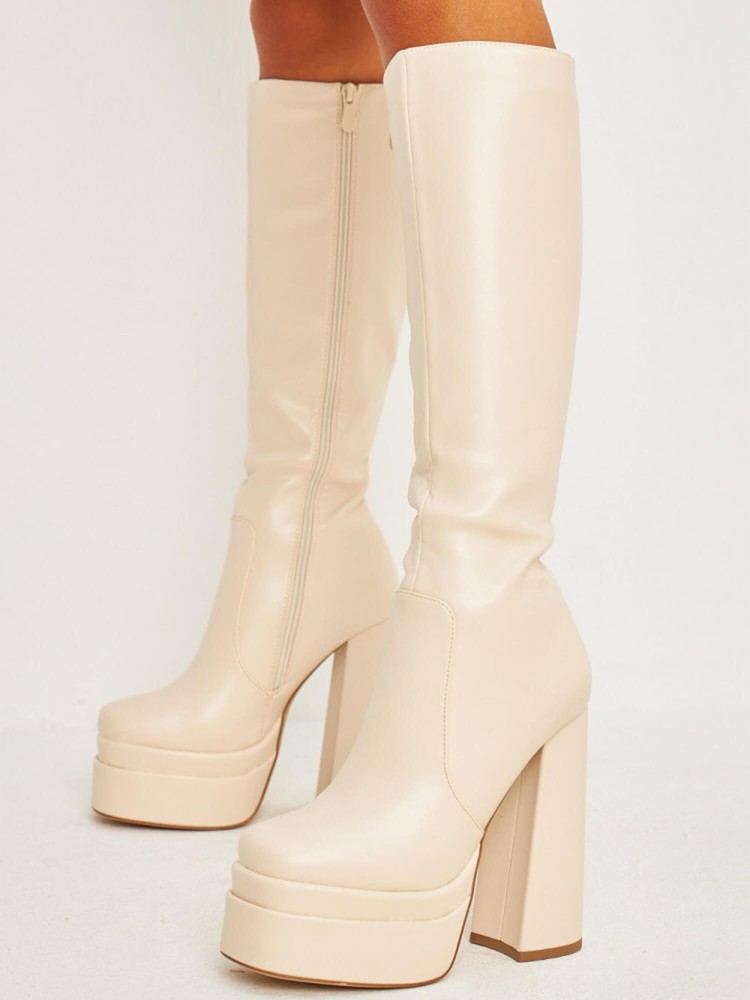 Μπεζ μπότες από δερματίνη κανονική γραμμή κλείνει στο πλάι με φερμουάρ ύψος μπότας 52 εκ ύψος τακουνιού 15 εκ ύψος φιάπας 5,5 εκ