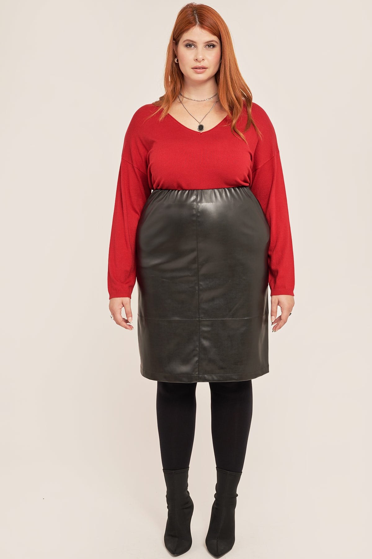Φούστα pencil με όψη δερματίνης. Ελαστική μέση που εξασφαλίζει άψογη εφαρμογή. Το απόλυτο κομμάτι-επένδυση για τη γκαρνταρόμπα σας. Το μοντέλο έχει ύψος 178 εκ και φοράει μέγεθος S