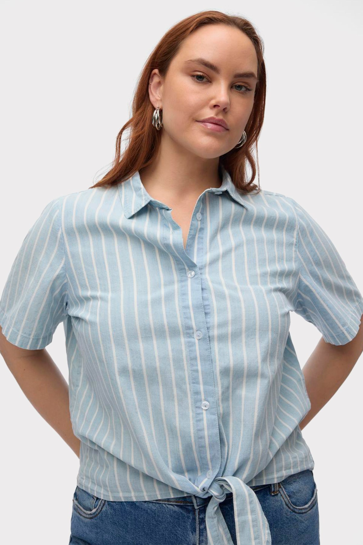 Ριγέ πουκάμισο σε βαμβακερό denim. Γιακάς πουκαμίσου. Κούμπωμα με πατιλέτα και κουμπί. Cropped σχέδιο με δέσιμο στο τελείωμα. Κοντά φαρδιά μανίκια. Ένα πραγματικά κλασικό κομμάτι που προσθέτει πάντα μια δροσερή νότα στην εμφάνισή σας. Αποκτήστε το νέο αγαπημένο σας κομμάτι και ερωτευτείτε τη τζιν εμφάνιση ξανά και ξανά.