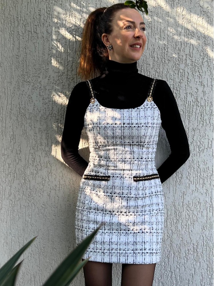 Λευκό πλεκτό tweed φόρεμα κανονική γραμμή , σταθερό ύφασμα ΑΠΑΙΤΕΙΤΑΙ πλύσιμο στο χέρι με κρύο νερό