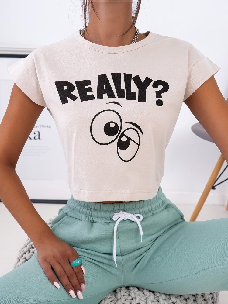 crop tshirt με σταμπα  κανονική γραμμή  one size