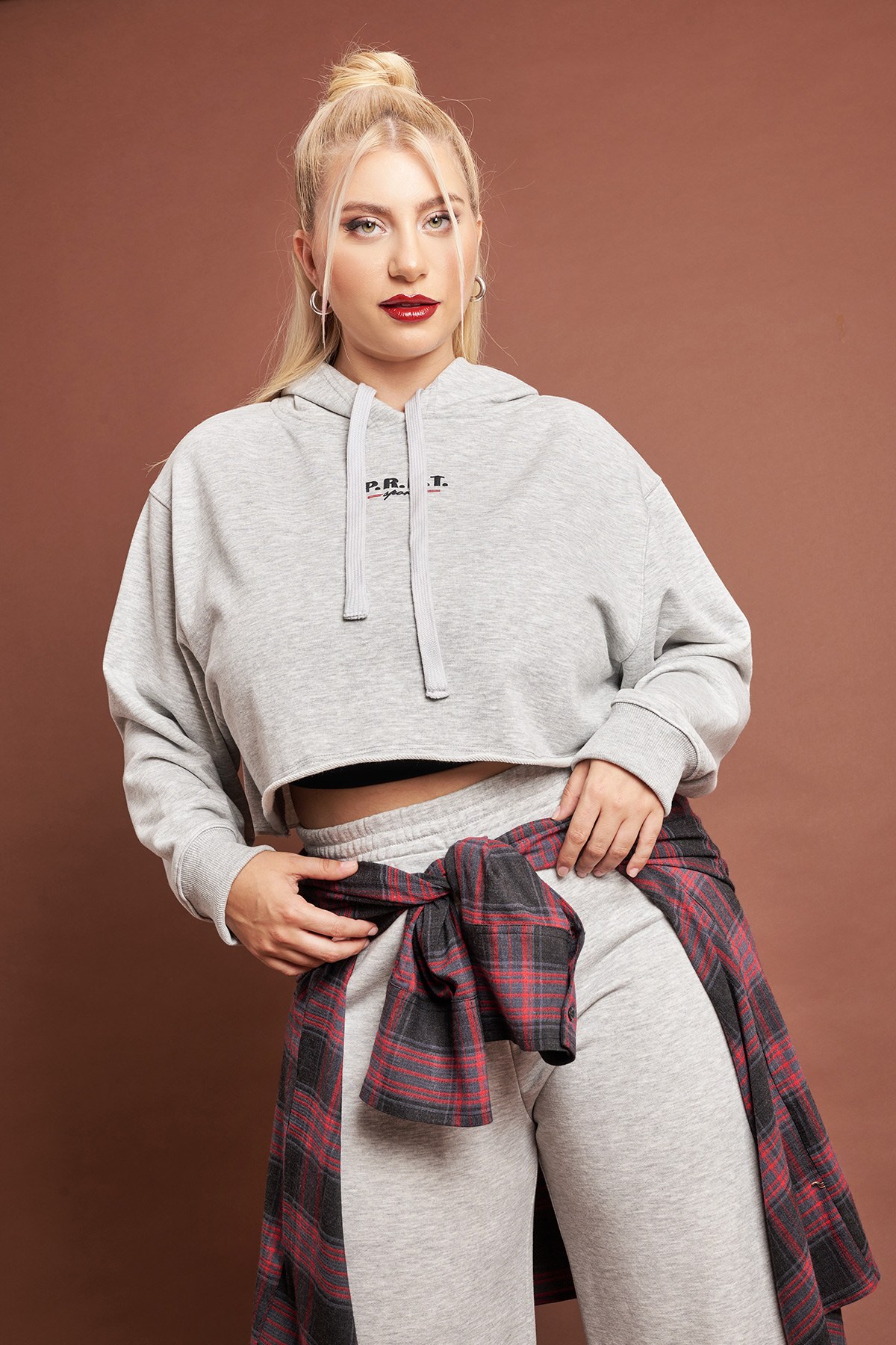 Άνετο φούτερ cropped με τύπωμα λογότυπο PRBT. Aπό σύμμεικτο βαμβάκι. Μακριά μανίκια με μανσέτα και στρογγυλή λαιμόκοψη. Διαθέτει κουκούλα. Το μοντέλο έχει ύψος 177εκ, στήθος 110, μέση 85, περιφέρεια 115 και φοράει μέγεθος S