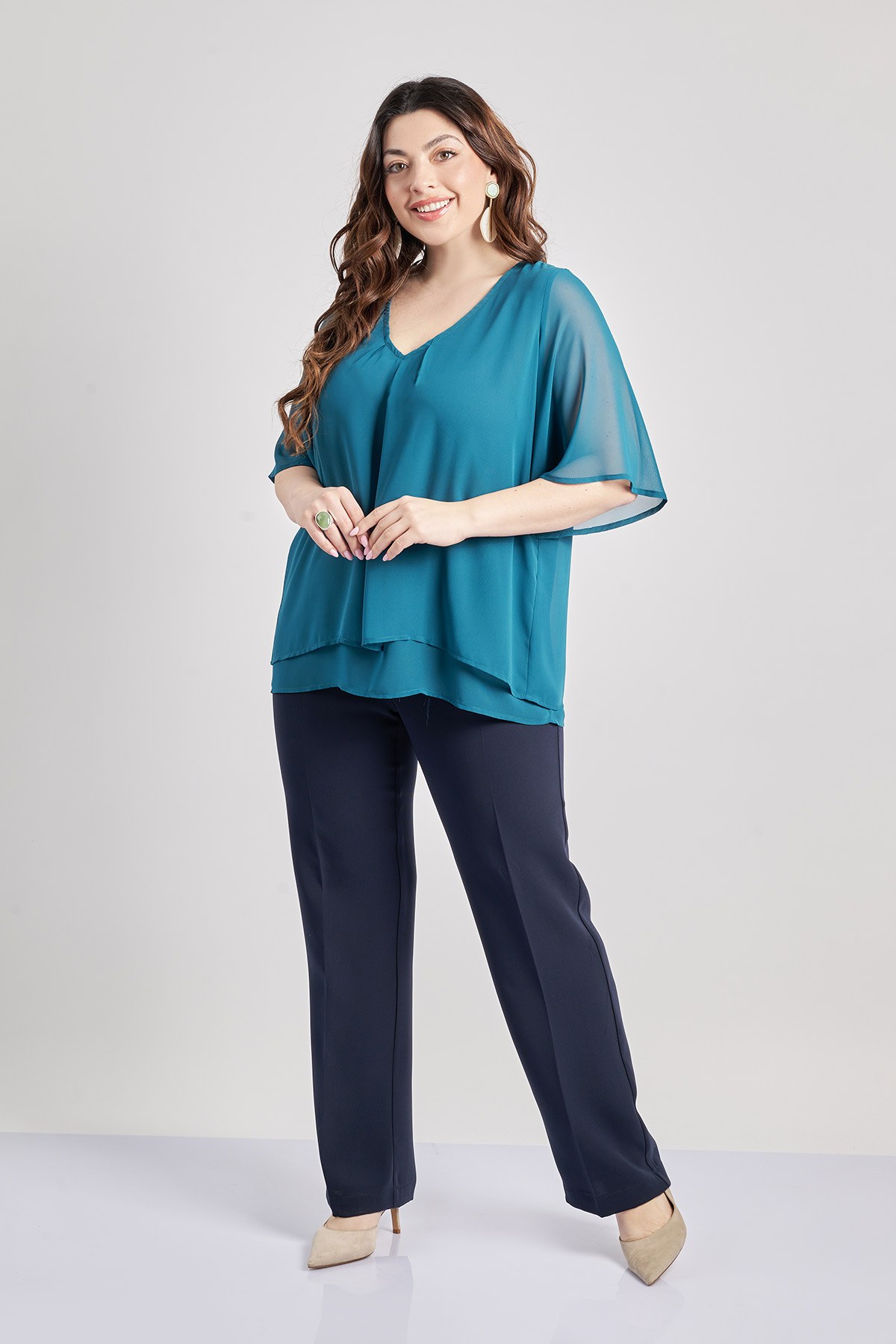 Κρεπ παντελόνι σε ίσια γραμμή με λάστιχο στη μέση και τσάκιση. Κούμπωμα με φερμουάρ και κουμπί. To all time classic παντελόνι που πρέπει να υπάρχει σε κάθε ντουλάπα. Το μοντέλο έχει ύψος 172 εκ, στήθος 108, μέση 94, περιφέρεια 111 και φοράει το μέγεθος S