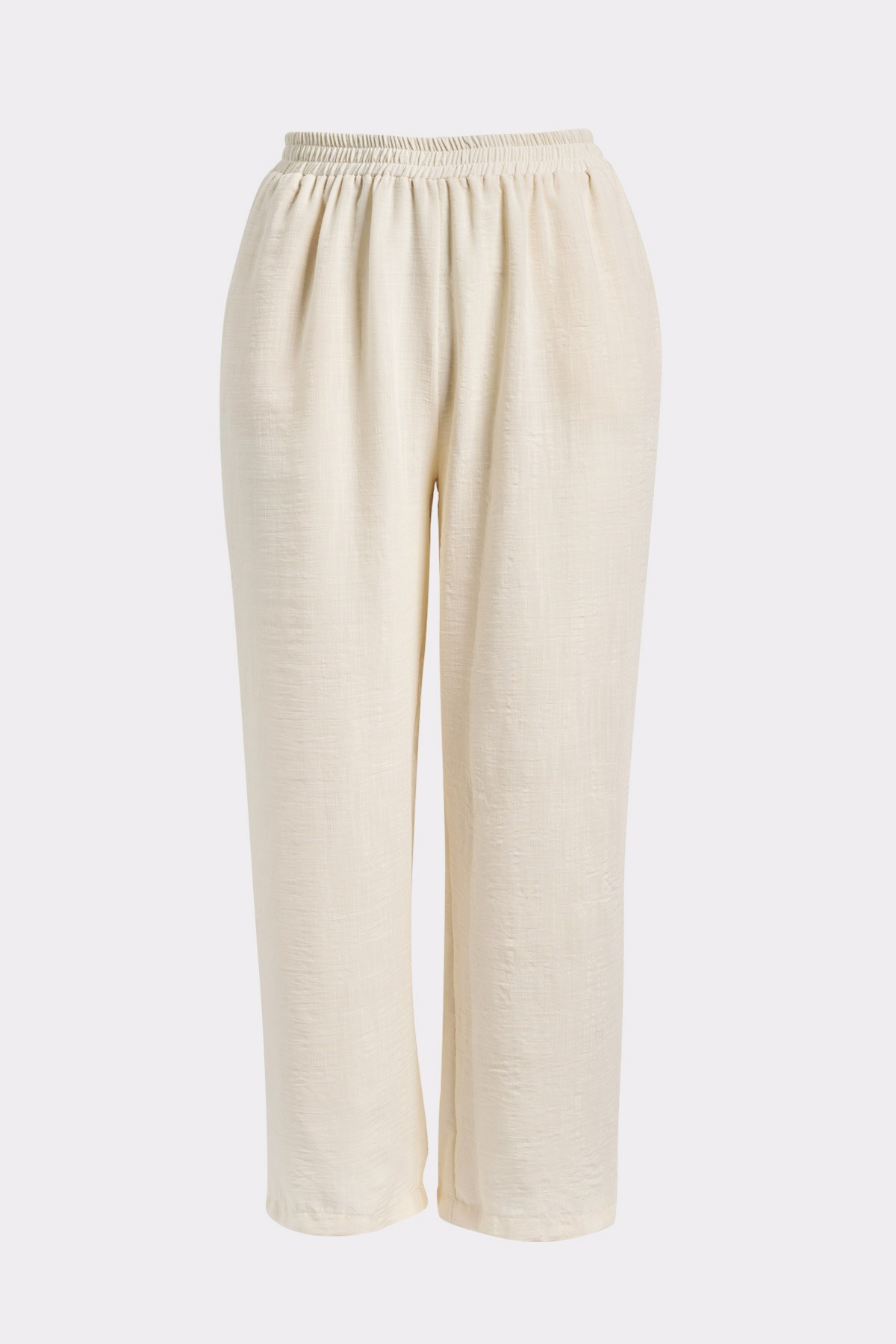Παντελόνα μονόχρωμη σε όψη λινού. Λάστιχο στη μέση για άψογη εφαρμογή. Σε ίσια γραμμή. Κανονική εφαρμογή.