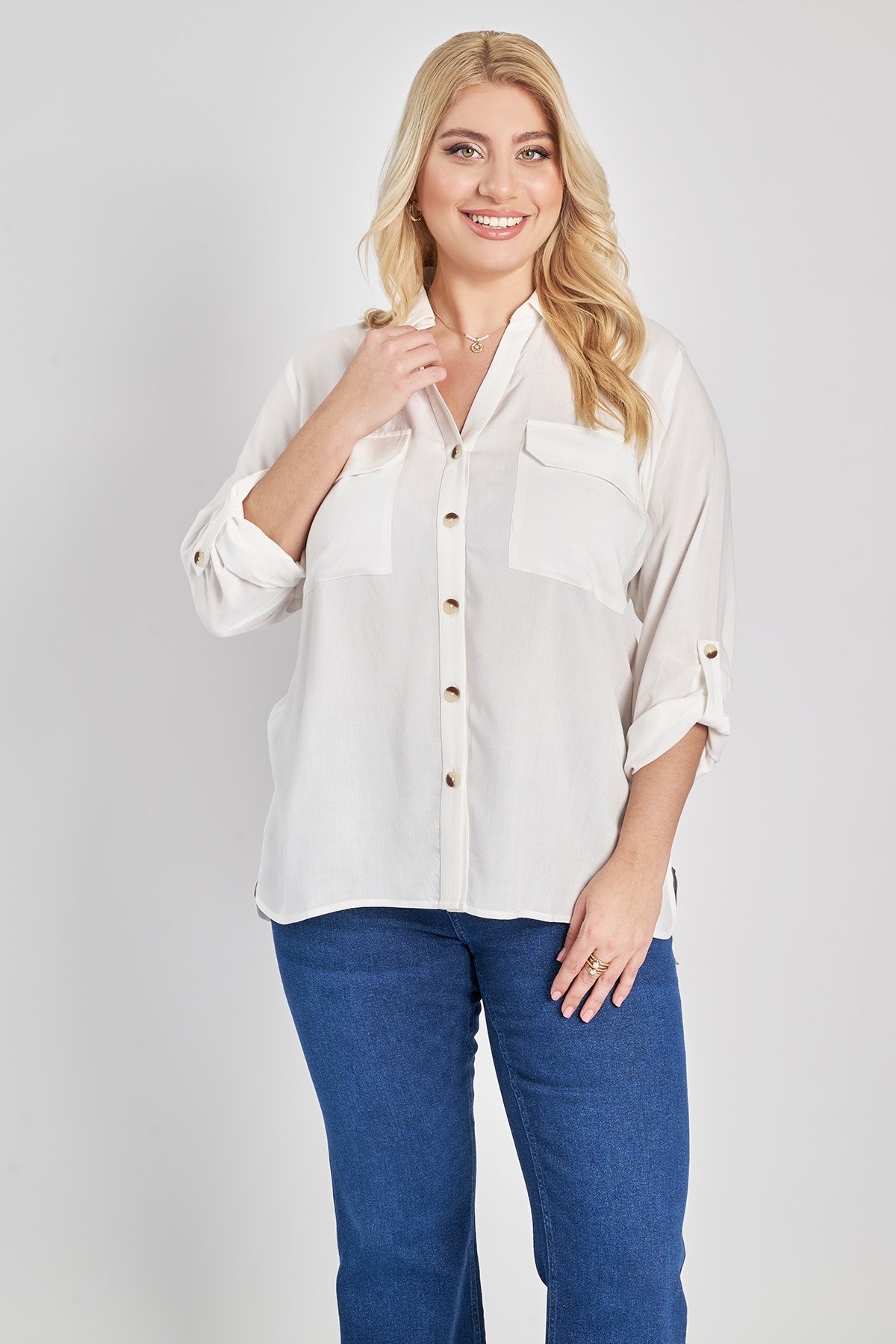 Πουκάμισο βισκόζη με τσεπάκια και κουμπιά ταρταρούγα