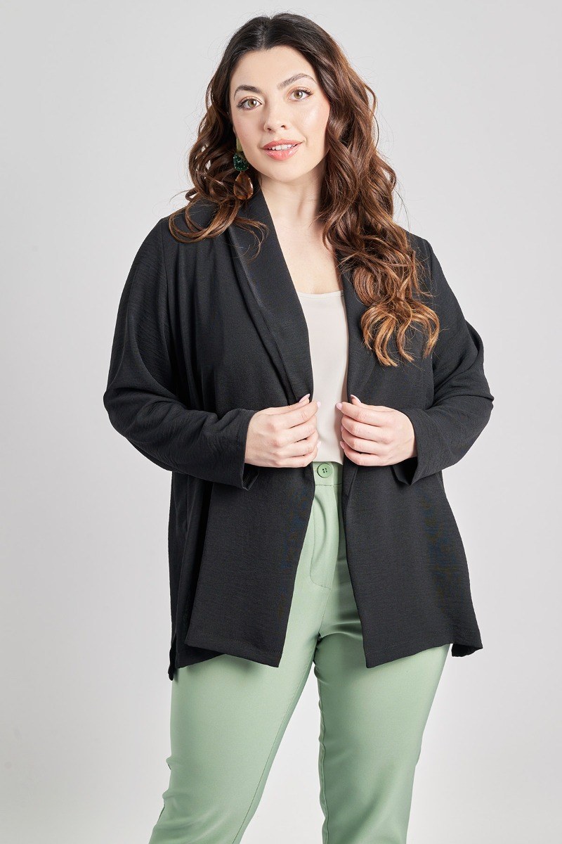 Ζακέτα μπλέιζερ σε στυλ σακάκι σε δροσερό ύφασμα washed με ανάγλυφη υφή. Με στρογγυλεμένο πέτο. Μακριά μανίκια. Σε ίσια γραμμή. Χωρίς κούμπωμα. Χωρίς φόδρα. Πλαϊνά ανοίγματα. Μήκος που καλύπτει τους γοφούς. Συμπληρώστε το σετ με το washed παντελόνι 012510205583 ή την washed παντελόνα 012410205584. Συνδυάζεται επίσης με τα ίδιας ύφανσης washed τοπ με κωδικό 012510105574 ή 012510108475 ή 012510108186 ή 012510105575 ή 012510107675 ή 012510107669. Το μοντέλο έχει ύψος 172 εκ, στήθος 108, μέση 94, περιφέρεια 111 και φοράει το μέγεθος S