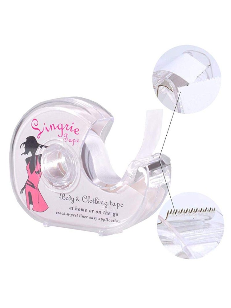 Ρολό διάφανης αυτοκόλλητης ταινίας διπλής όψης για αόρατη στήριξη σε βαθιά ντεκολτέ. Κολλάει στο δέρμα και στα ρούχα. Μπορεί να κοπεί στο μήκος που απαιτεί κάθε περίπτωση. Μήκος 3 μέτρα και φάρδος 1,5 cm.  Χρησιμοποιείστε αυτή την ταινία σε μπλούζες με βαθύ ντεκολτέ. Εφαρμόστε την μια πλευρά της ταινίας στο στρίφωμα της μπλούζες και κολλήστε το άλλο κομμάτι στο στήθος σας. Με αυτόν τον τρόπο αν σκίψετε δεν φαίνεται το στήθος σας. Κάντε το ίδιο και στις πλαινές πλευρές και προφυλάξτε την θέα από την πλευρά. Και στις δύο περιπτώσεις αυτή η ταινία σας βοηθά να κρατήσετε την κίνηση σας ελεύθερη ακόμα και όταν φοράτε φαρδιά και χαλαρά ρούχα. Για να αποφύγετε την παρουσία υπολειμμάτων κόλλας στα ρούχα συνιστάται η αφαίρεση της ταινίας αμέσως μετά τη φθορά